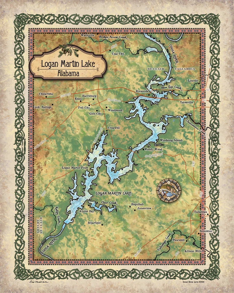 Logan Martin Lake Alabama Map Art Print Poster Vintage Wall Home