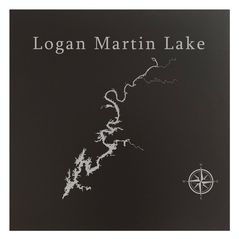 Logan Martin Lake Map 24×24″ Black Metal Wall Art Office Decor
