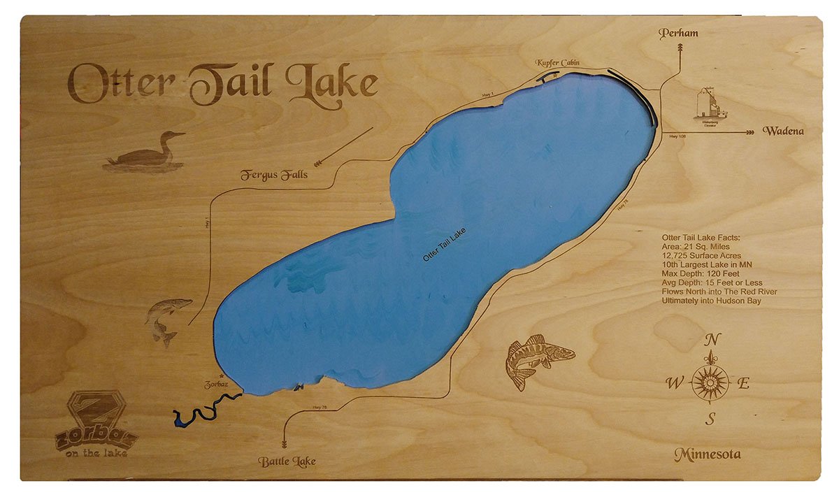 Otter Tail Lake, MN 3D Wood Topo Maps