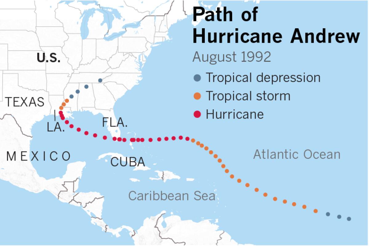 Path Of Hurricane Andrew Map